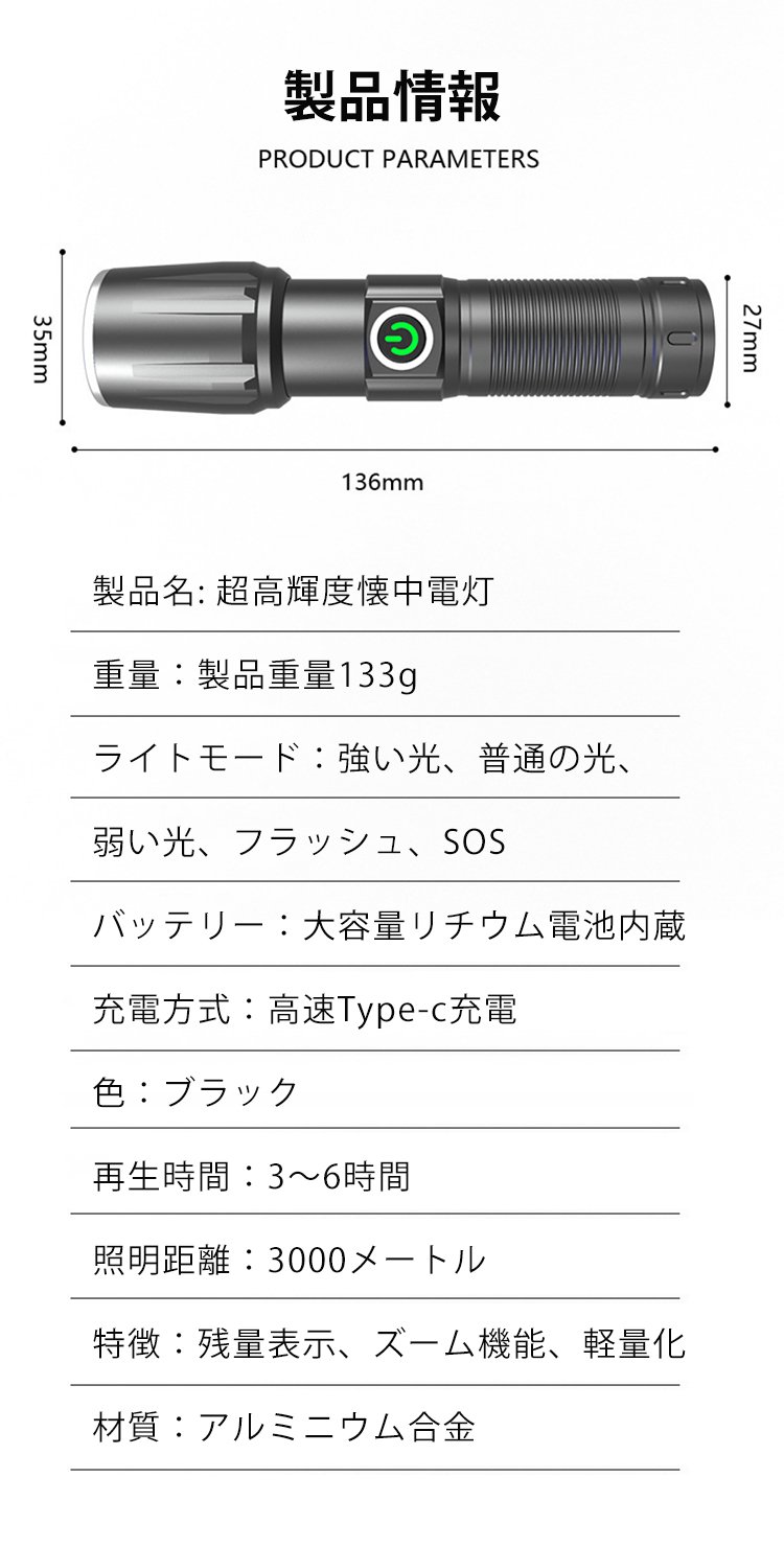屋外用超高輝度懐中電灯